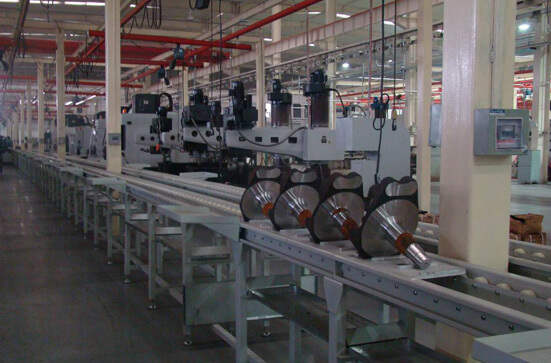 3,根據(jù)零部件形狀特性加工工序的特殊要求,流水線設(shè)計成U型滾輪輸送線,工裝板放置工件流轉(zhuǎn),萬向球臺轉(zhuǎn)彎,線側(cè)操作臺暫存并檢測工件,形成好的工序加工生產(chǎn)。
