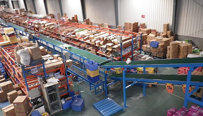 出庫(kù)區(qū):打包完成的商品再次通過(guò)輥筒輸送機(jī)輸送至出庫(kù)口,準(zhǔn)備裝車(chē)配送。