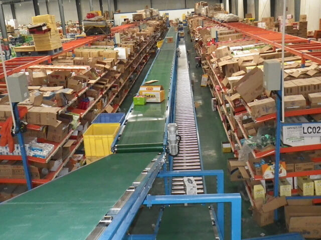 頂層配置皮帶輸送機(jī)用于輸送大量的空紙箱,避免現(xiàn)場(chǎng)因?yàn)榭粘龅南渥釉斐呻y以找貨的情況。