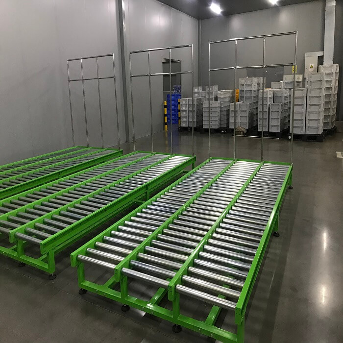 無(wú)動(dòng)力滾筒線在輸送貨物時(shí),貨物要靠人工推著或者是貨物在自身重力的作用下下滑自由輸送,無(wú)動(dòng)力滾筒線的輸送距離相對(duì)短一些,適用于貨物底面是平面的物品輸送,對(duì)于散料、小件物品,還有外型不規(guī)則的貨物,需要放在托盤(pán)上或周轉(zhuǎn)箱內(nèi)進(jìn)行輸送。